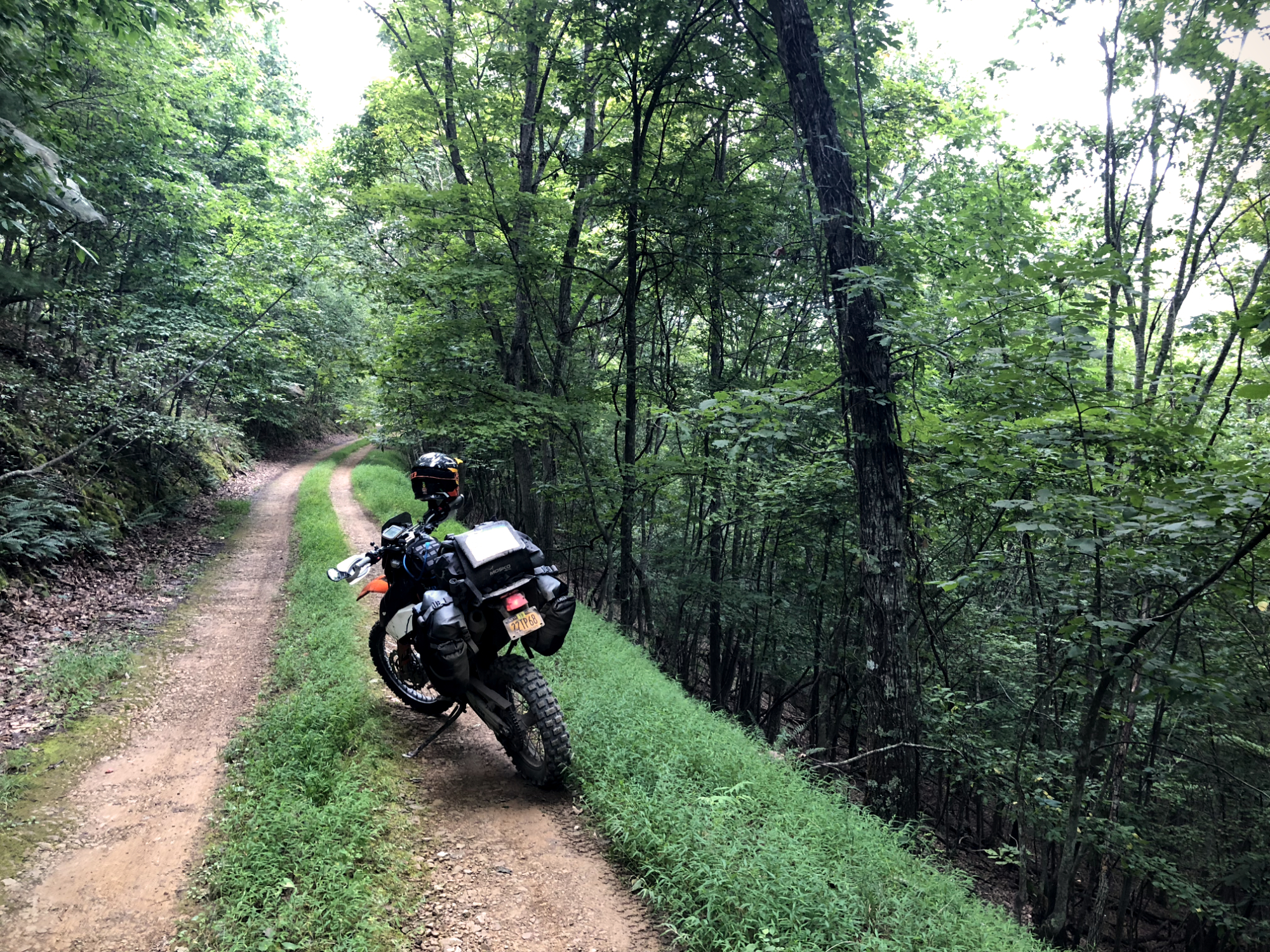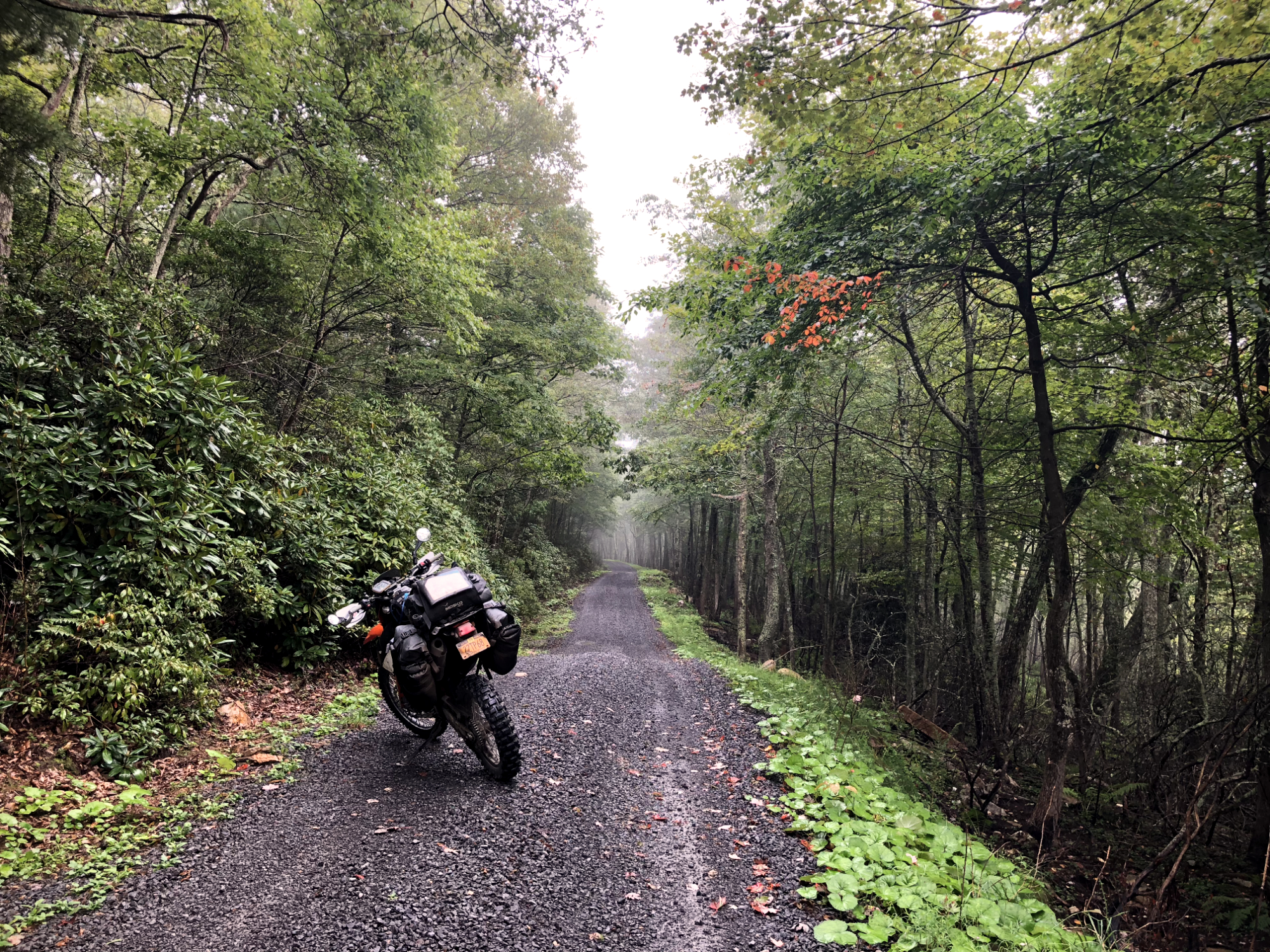 There's so much moisture out here. The misty tracks were fantastic. I got dumped on for 15 minutes around 4pm and then the sun finally appeared. Decided to head to Bland, VA and get a motel room. There was some great twisty and long straight gravel to end the day with. Super fun stuff. I got my first dog chase, a big German Shepherd.