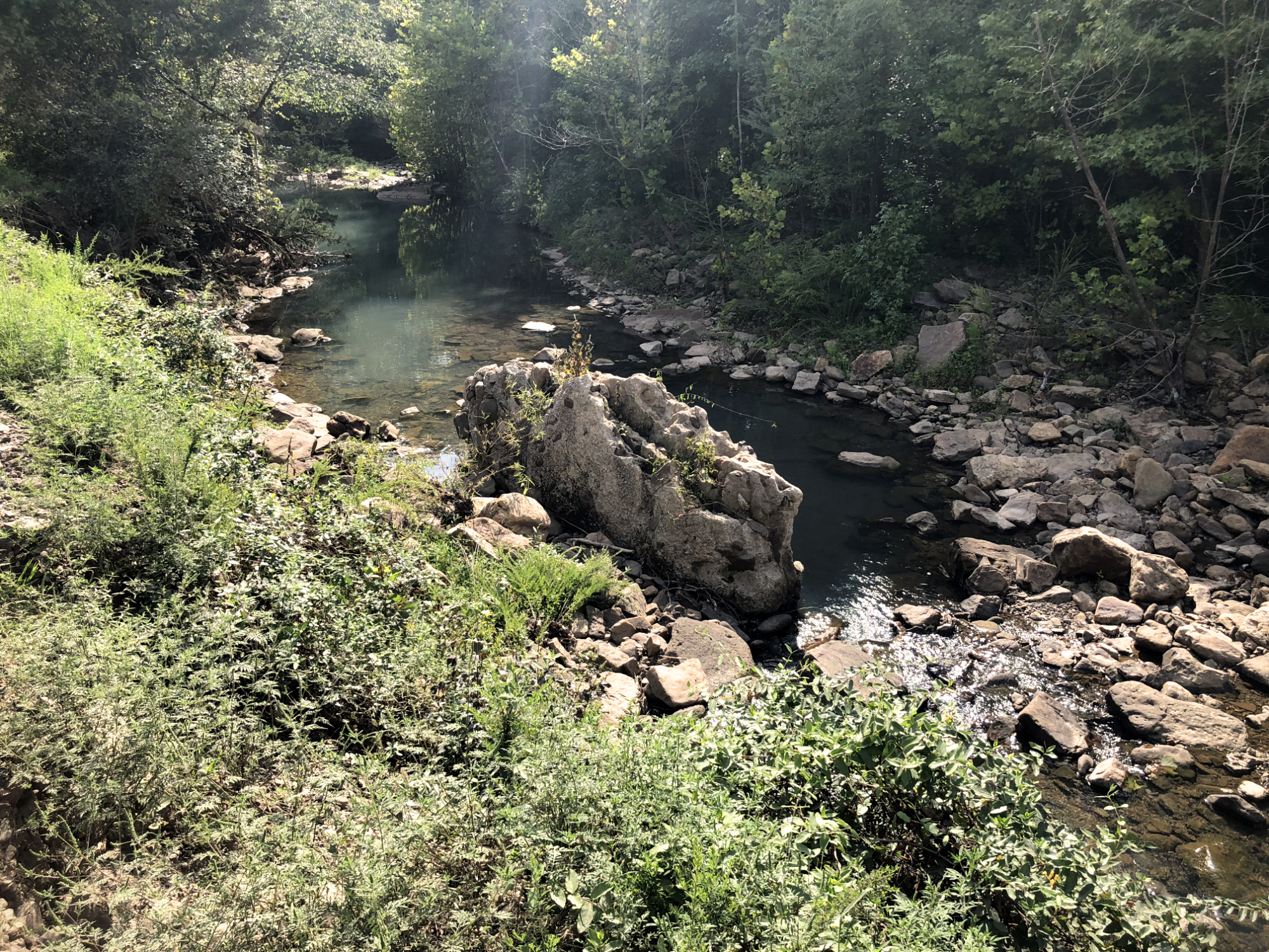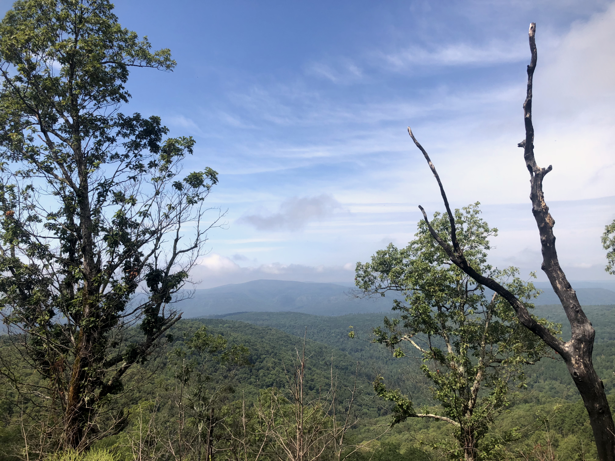 After lunch, the roads got a bit tighter, with more single lane dirt heading up White Rock Mountain where there is a spectacular view of the Ozarks. Not too long after that I made a right onto Warloop Road and knew I was in for some fun. It's probably the most technical section of the TAT, so far but I slipped the clutch, picked my lines, and got through with no issues. I tried to get a good photo, but it's hard to capture how steep and rocky it is. At some points you're basically riding down a set of rock stairs. I wouldn't want to have to go back the way I came.