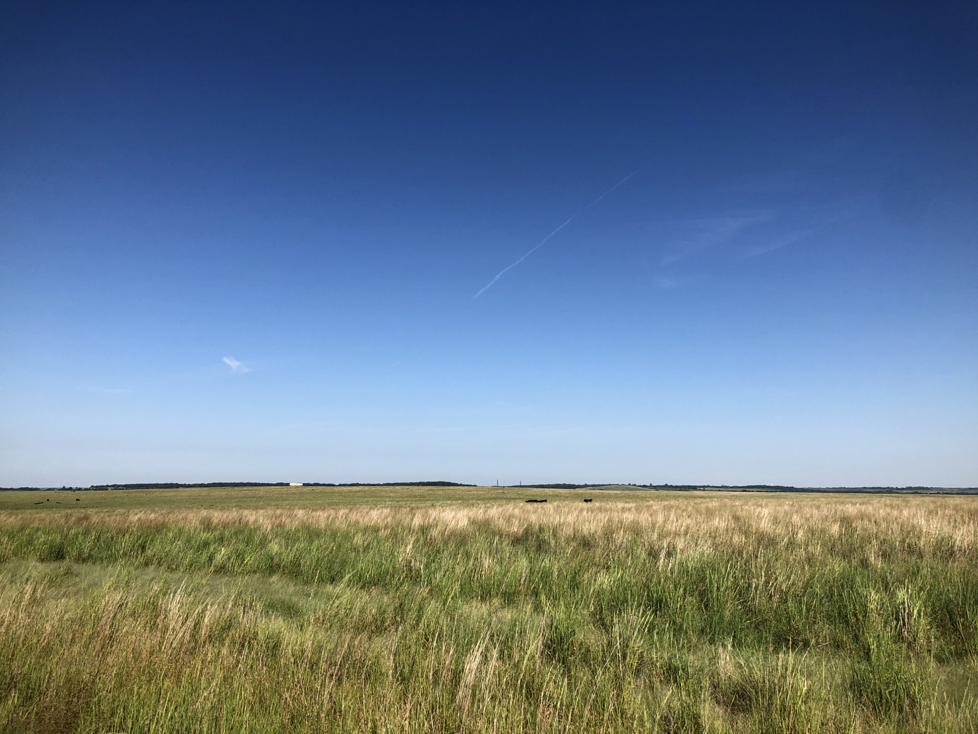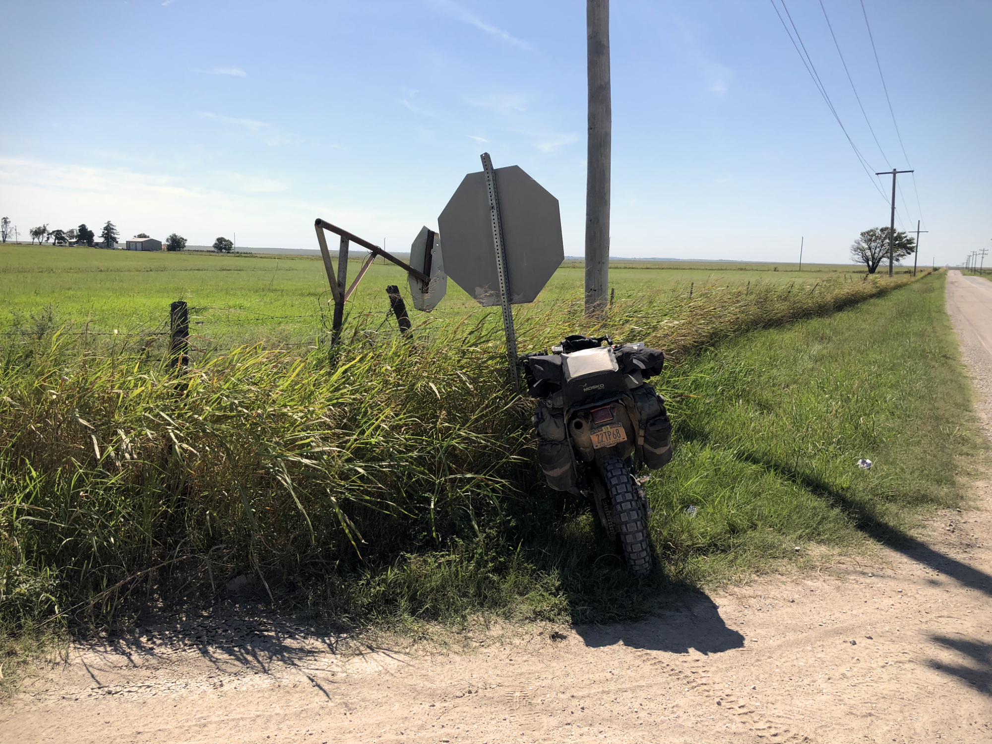 I got moving early today and the first few dozen miles after Moody's were nice, scenic hill country. There were a few mud holes after the rain last night but all were manageable. After I crossed over the Grand River, it flattened out more. The riding near Tall Grass Prairie Preserve was nice.