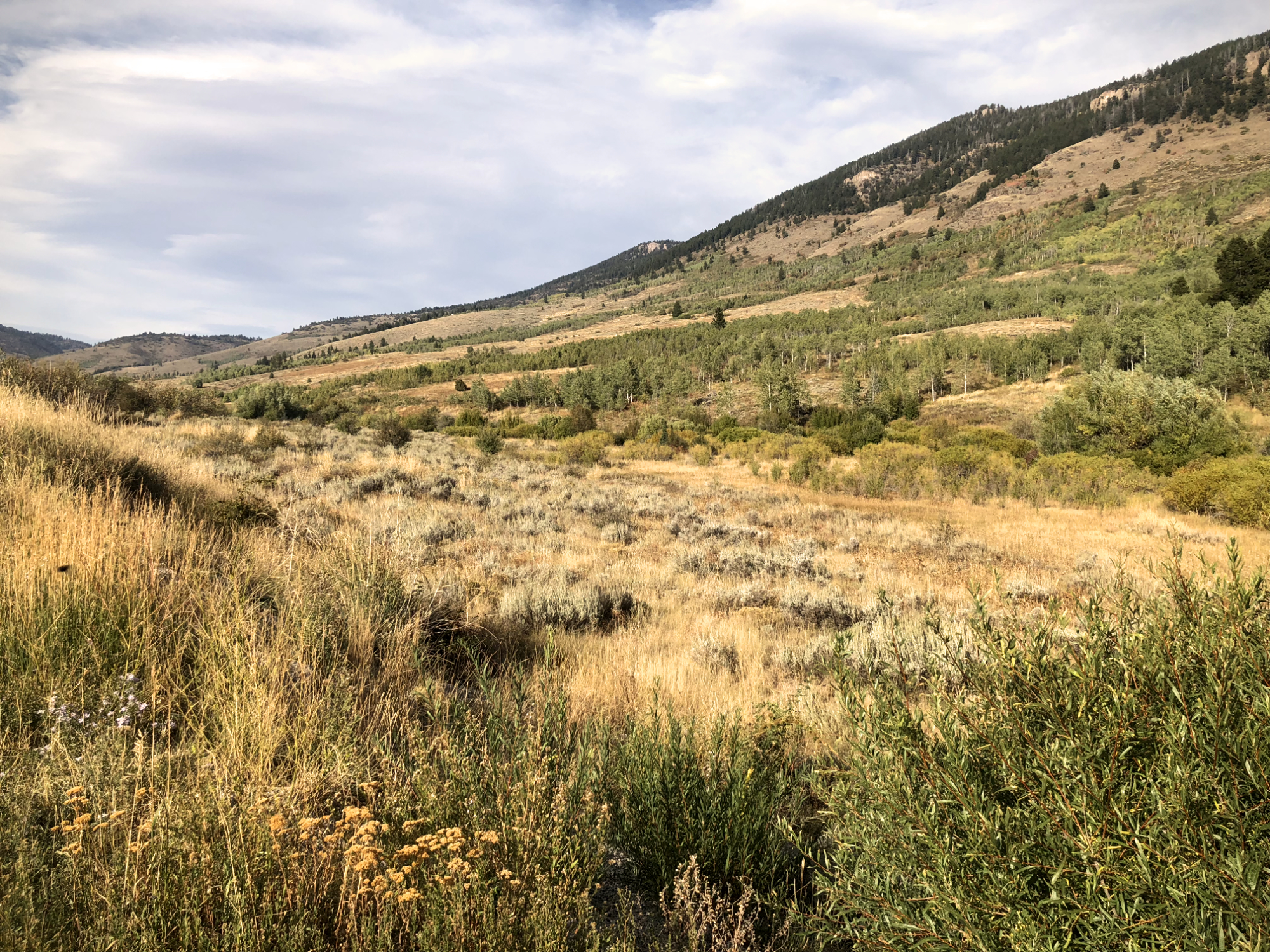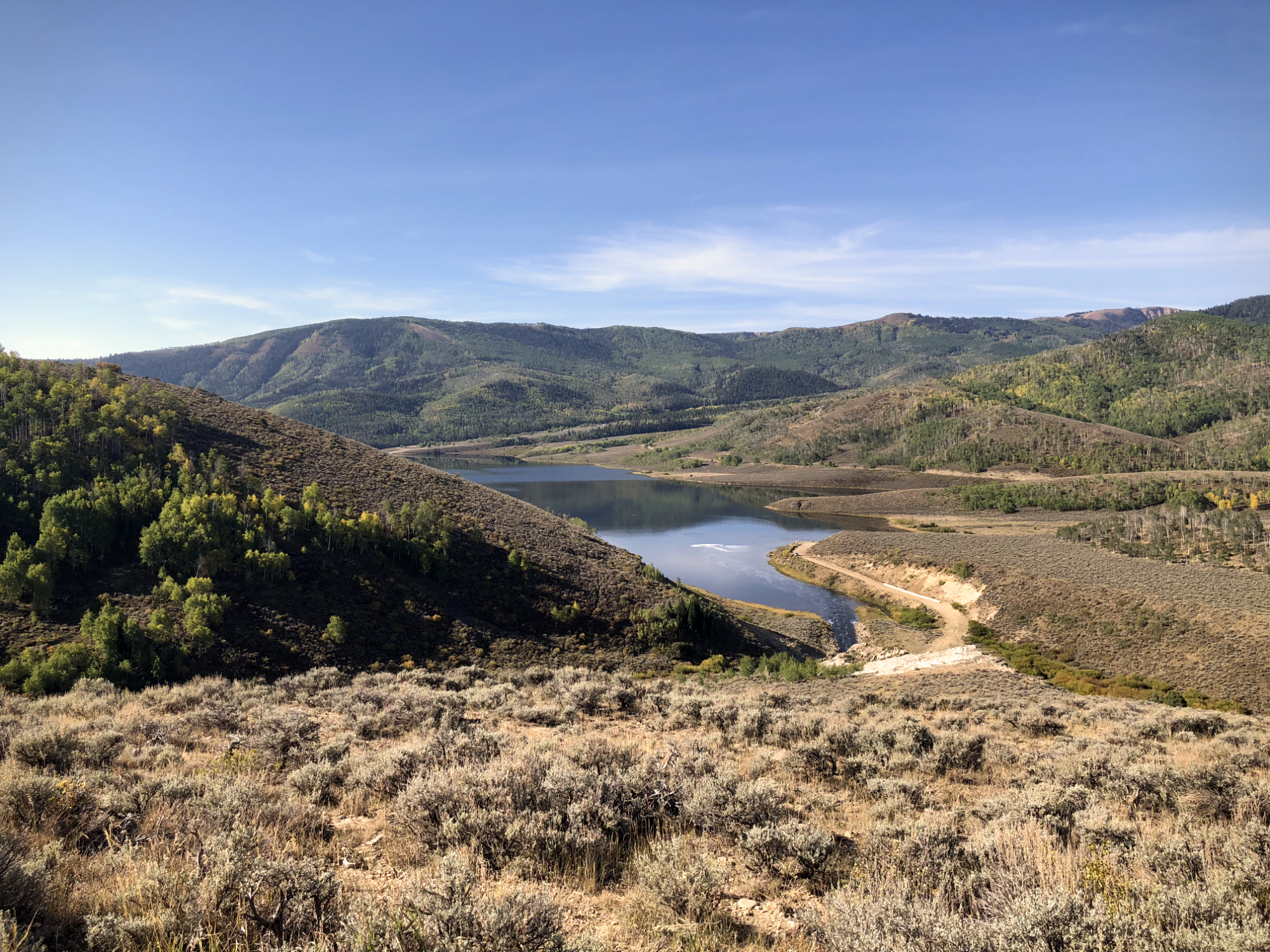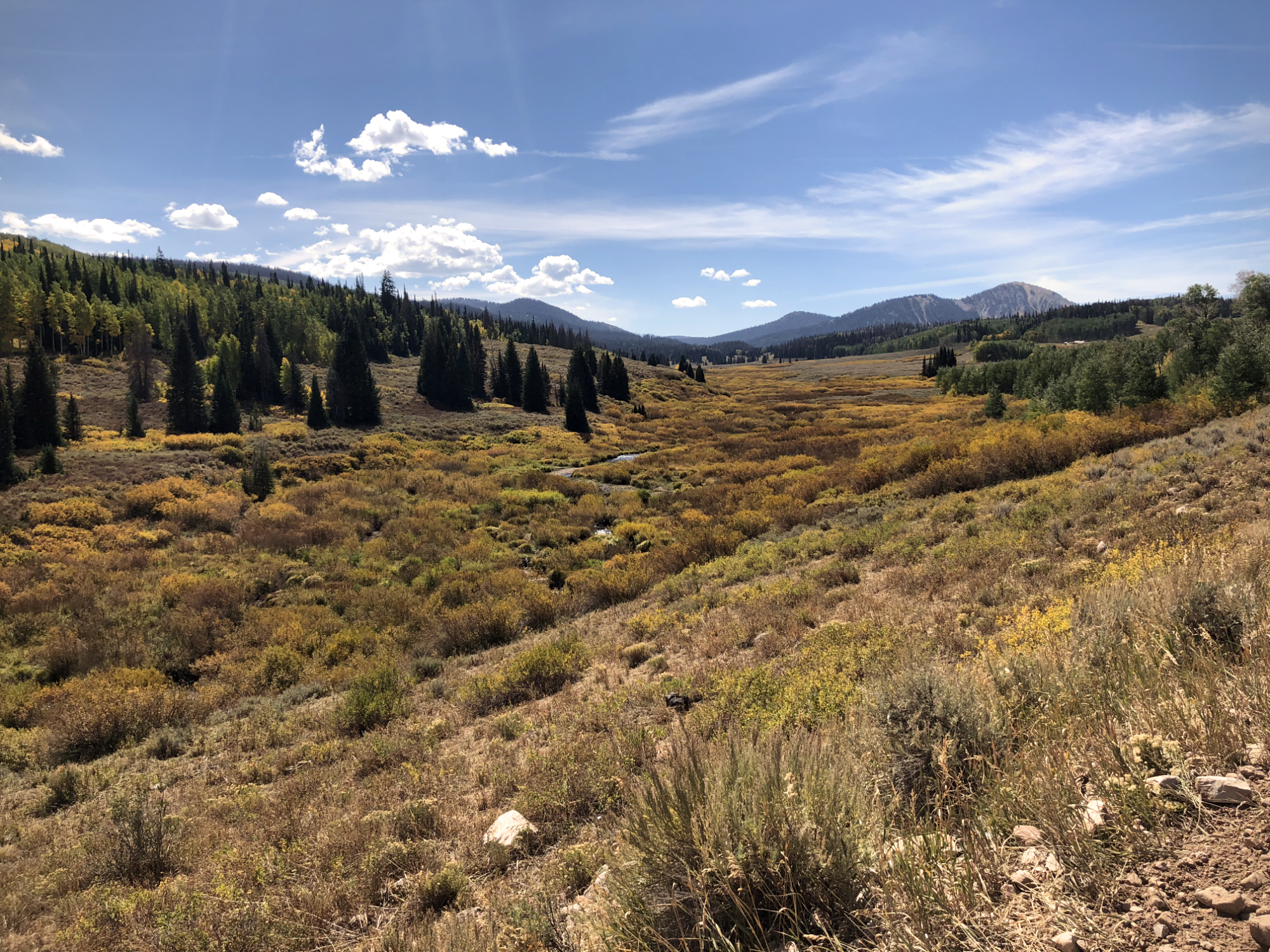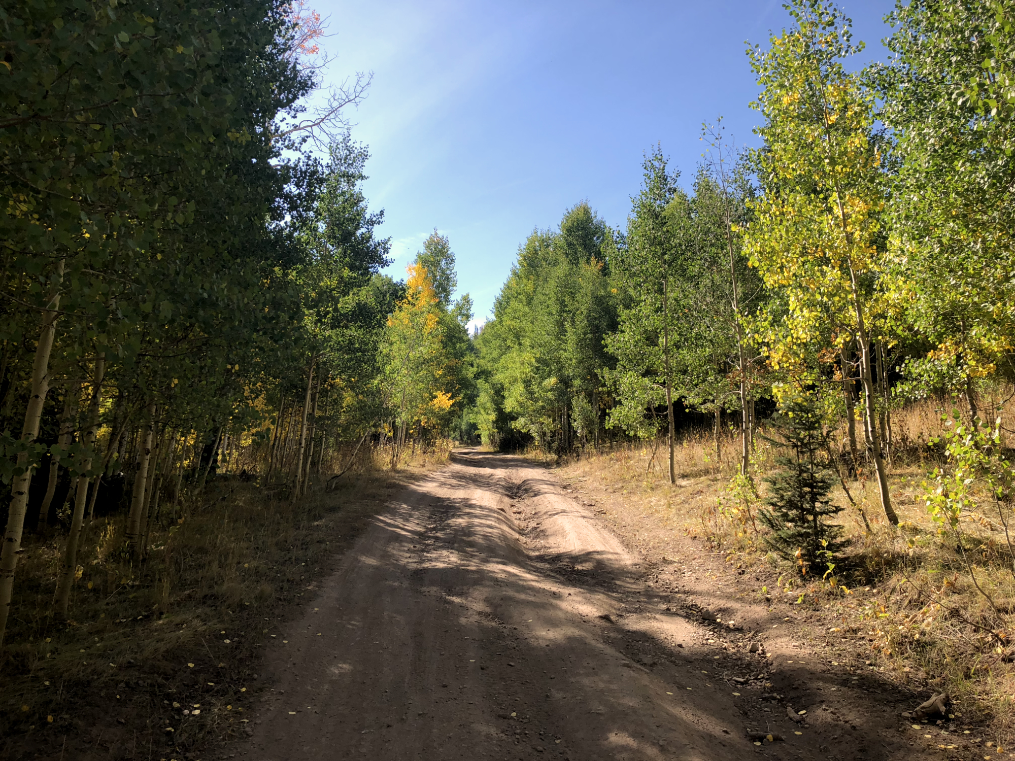 Perfect weather today. The morning tracks took me through Uinta National Forest on wide dirt roads. There was a lot of washboard that got old quickly, but it eventually stopped and became a rutted single lane road. Riding in between the ruts generally worked out. This led through some gorgeous aspen groves. The leaves here had changed much more than in Colorado.